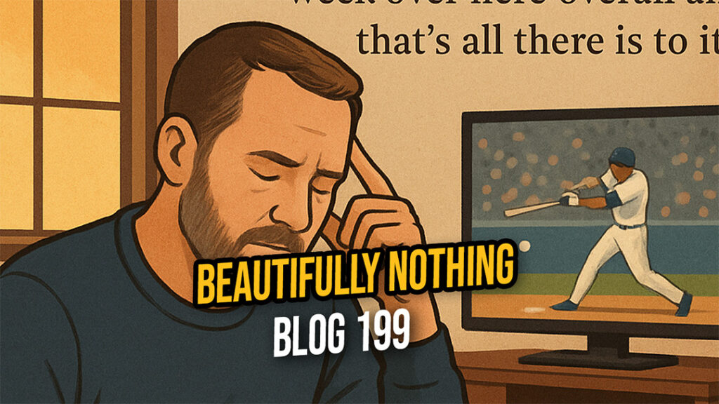 I tried to push this ’emptiness’ aside and dig a bit deeper. As I excavated… I stumbled upon an interesting discussion I had on Wednesday about a mosh posh of Ivy League education and crypto-currency and identity theft online scams but not enough meat to hold my attention let alone write about it… so keep diggin’. I thought about the extremely cool vibe that has been taking place in the TV room for the world series games… especially Friday night’s Game 6 (I am writing this Saturday morning prior to Game 7 so positive vibes for a Dodger win tonight)… but I have written about the comradery and “Sports Bar” feel surrounding sporting events before so pass on that. I thought about the lovely conversation that I had with my boys Friday afternoon regarding their Halloween costumes (A K-Pop Demon Slayer and Deadpool) and basketball practices and upcoming musical shows and there is nothing else in the world that fills my soul more than a solid 15 minute conversation with those two dudes these days but I’ll selfishly hold onto that for myself. I thought about how… as I write this… it is November 1st and how insanely fast this year has flown by… genuinely mind blowing. But I have written about the interesting juxtaposition of time seemingly flying by while living behind these gates while simultaneously feeling like I am dog paddling in a vast ocean of it just trying to stay afloat until I reach shore so I’ll leave that subject alone. I thought about a lot of things… which in itself is beautiful and makes me extremely grateful that I have found the space to be able to quiet the noise to allow myself to deeply think. Seems like a funny thing to be thankful for but I can’t overstate the importance of gifting yourself the time to reflect.